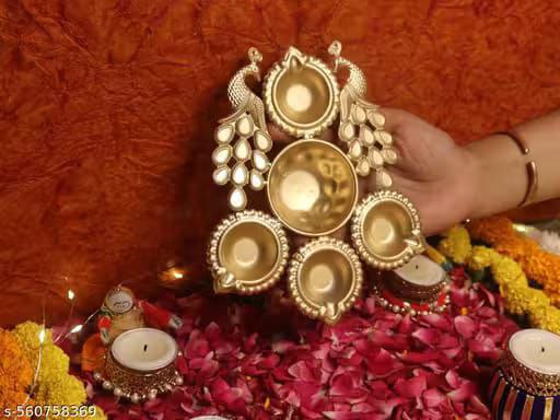 Lyonara Beautiful Peacock Traditional Diya for Diwali & Home ,Temple {pack of 2 }