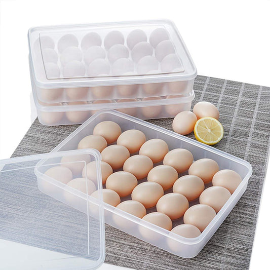 Plastic Egg Storage Box Single Layer 24 Grids with Lid Egg Basket Tray Useful for Home, Kitchen & Poultry (Multicolor, Pack of 1)