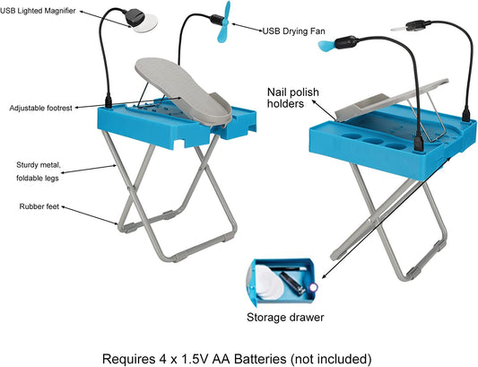 Pedicure Nail Art Nail Mending Foldable Adjustable Foot Rest Stand with Led Magnifier and Fan