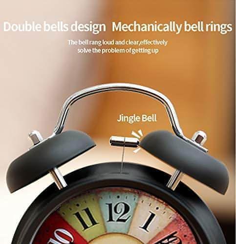 Metal Rainbow Glitter Vintage , Backlight, Battery Operated Loud Twin Bell Alarm Clock with Night LED Light Display for Heavy Sleepers , Kids and Students(Black, 4 inches) (Requires 1* AA Battery not included, pack of 1)