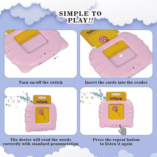 Cat Shape Talking Flash Cards Learning Game USB Charging (112 Dual Side Cards, 224 Words)